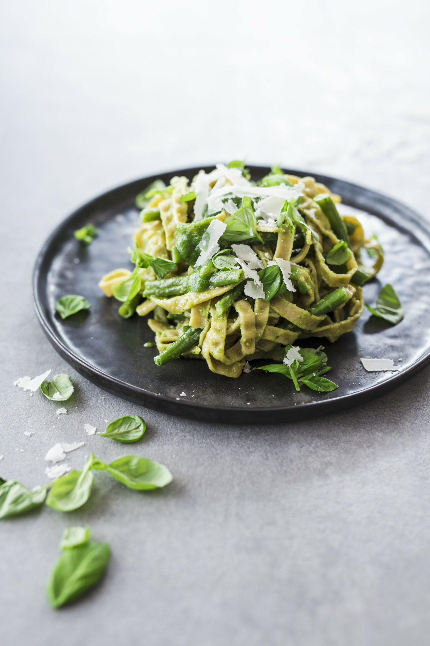 Pâtes aux haricots verts et pesto au basilic (10 personnes) Ingrédients Pâtes 1,1 kg de pâtes (penne, fusilli ou spaghetti) 600 g de haricots verts, équeutés Pesto 3 bouquets ...