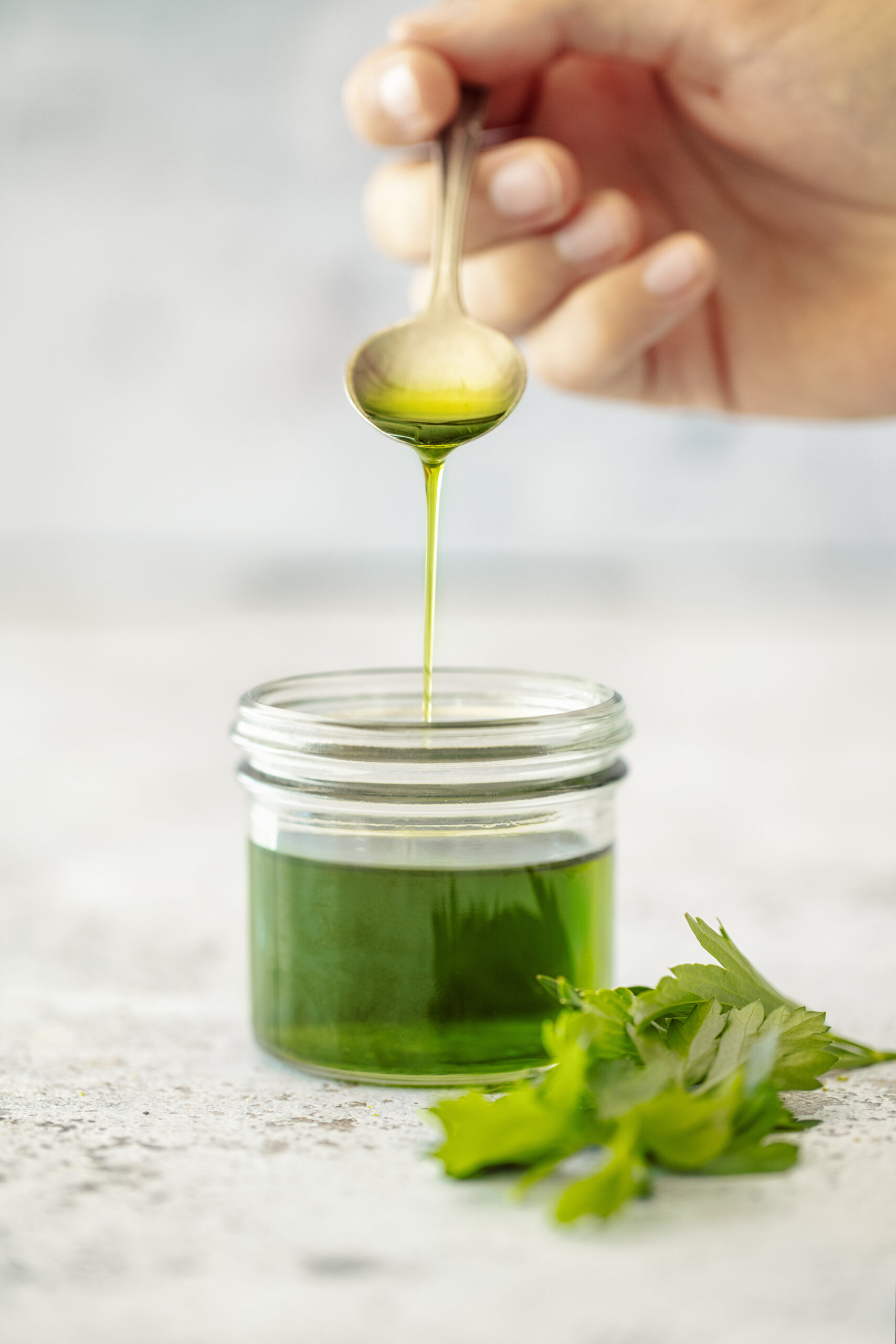 Huile aux herbes au persil et à la livèche Ingrédients 100 g de persil 50 g de livèche 500 ml d’huile neutre Sel Préparation Blanchissez le persil et la livèche pendant 30 secon ...