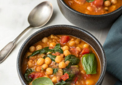 Soupe curry onctueuse aux pois chiches et épinards (pour 2 personnes) Ingrédients Un filet d’huile…
