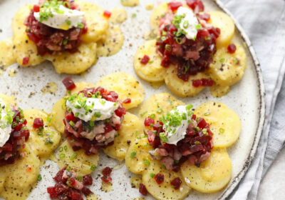 Fleurs de pomme de terre et tartare de harengs et betteraves Préparation : 30 minutes…