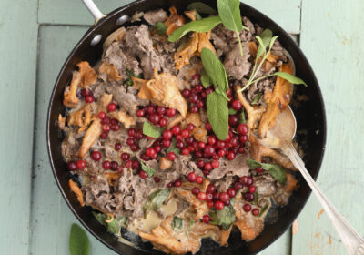 Wildragout met cantharellen, salie en veenbessen