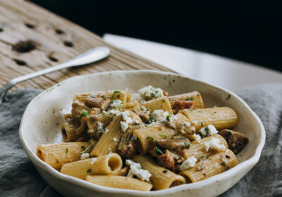 Volkoren rigatoni met porcini-paddenstoelen en blauwe kaas