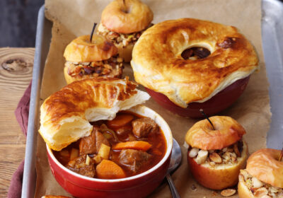 Goulash pot pie met gebakken appels