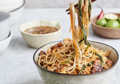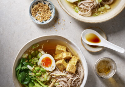 Tempeh-soba bowl met sesam-limoensaus Bereiding: 15 minuten Kooktijd: 15 minuten Budget: voordeligIngrediënten (4 personen) 300…