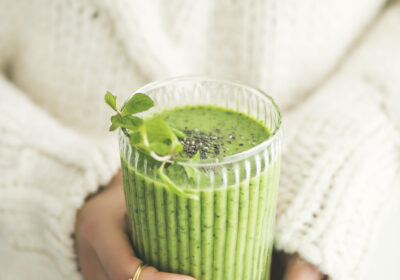 Matcha green vegan smoothie met chiazaad en munt Bereiding: 15 minuten Budget: voordeligIngrediënten (4 personen)80…