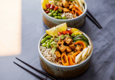 Buddha bowl met gemarineerde tofu en bruine rijstVoor 10 personenVoor de bowl:500 g bruine rijst…