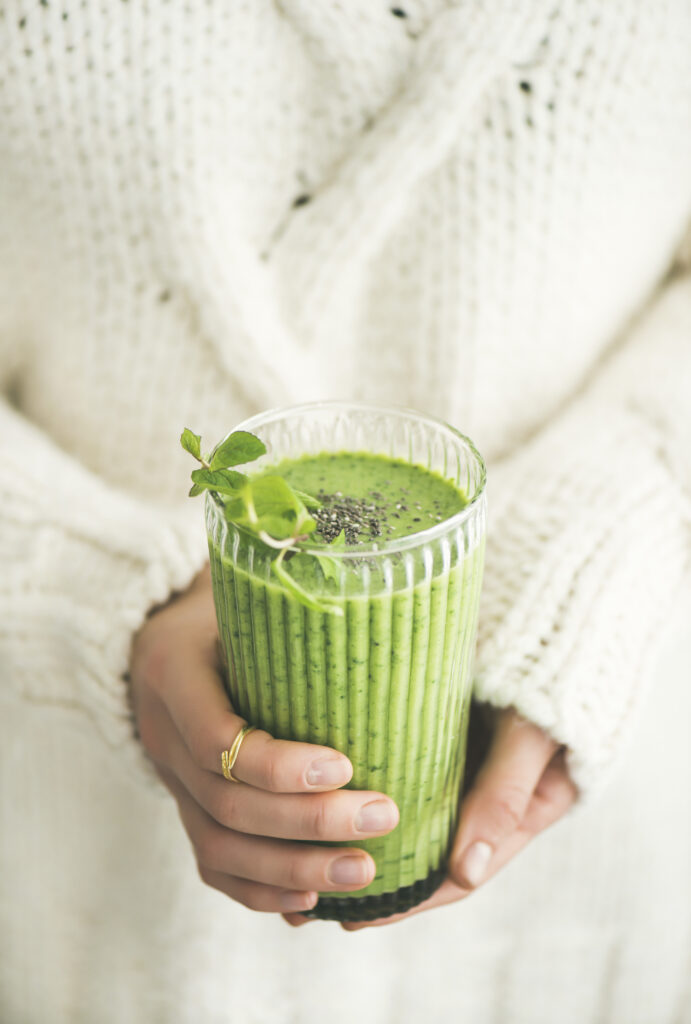 Matcha green vegan smoothie met chiazaad en munt